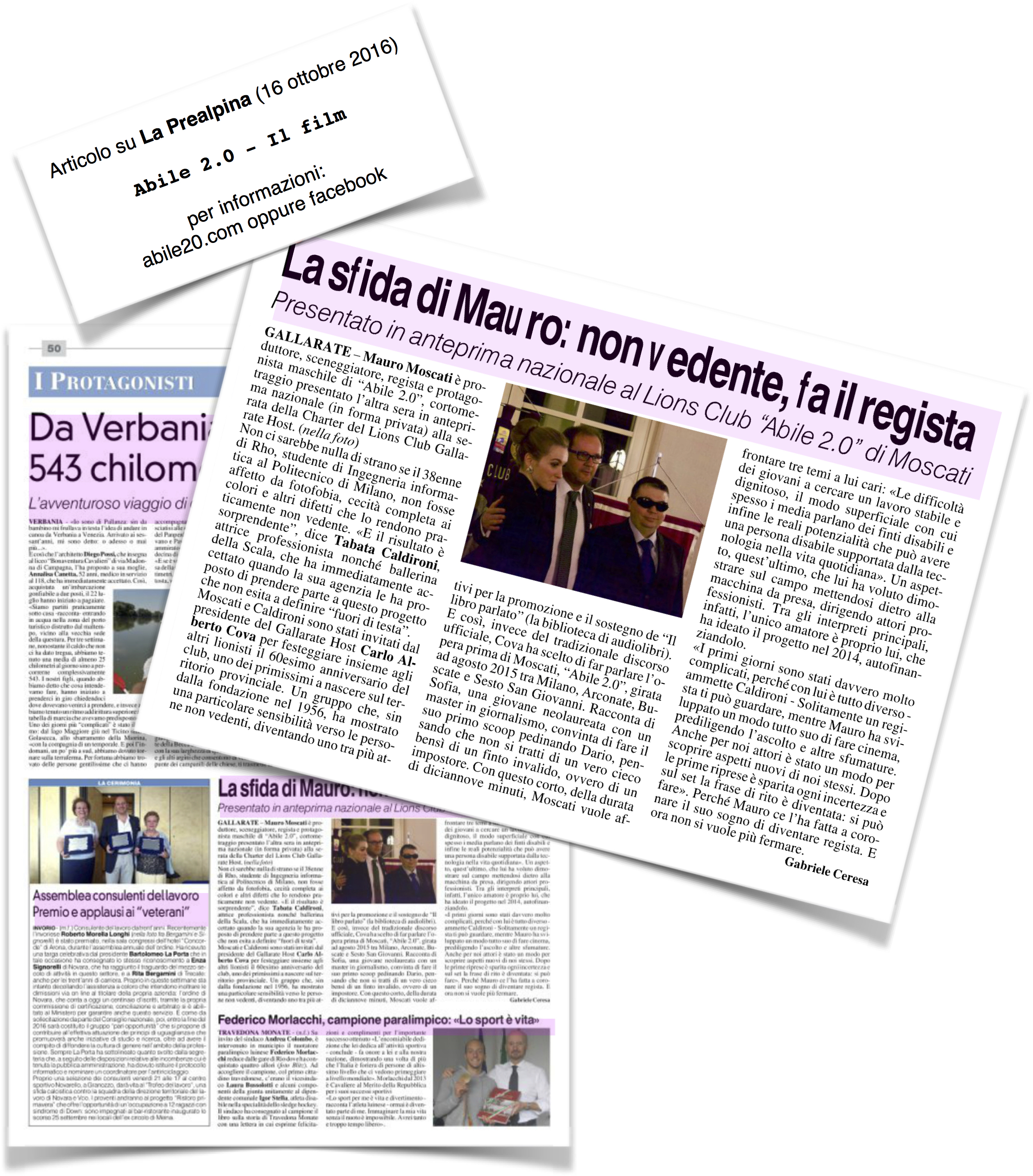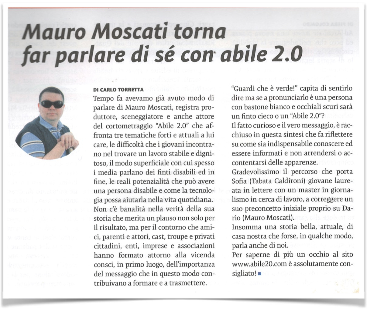 - Articolo “MAURO MOSCATI CON ‘ABILE 2.0′ APRE GLI OCCHI AI VEDENTI” pubblicato il 26/11/2015 su puntocontinenti.it